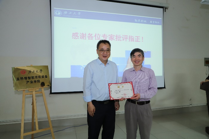 揭牌仪式结束后,专家们针对亚热带智能农机装备产业学院建设任务展开认真论证研讨。学院分管本科教学工作的李俚副院长向与会专家汇报了产业学院建设的前期工作以及产业学院建设规划。专家们一致认为,智能农机装备产业学院建设需要加强校企沟通与合作,以服务产业发展需求和强化学校办学优势特色出发,整合多元共建主体资源,共同对关键技术进行研究与开发,推进智能农机装备产业创新和发展。现代产业学院,意味着与传统的高校人才培养模式不同,要紧扣“产业”需求,突出“产业”特色,创新人才培养模式,构建更加科学实用的激励及评价体系,才能让亚热带智能农机装备产业学院为广西的区域经济社会与产业发展提供高质量人才和智力支撑。最后,专家组一致认为产业学院的建设符合国家的农业产业战略,目标定位准确,任务合理可行。同时,与会专家领导纷纷为产业学院的高质量发展提出宝贵的建议与意见。