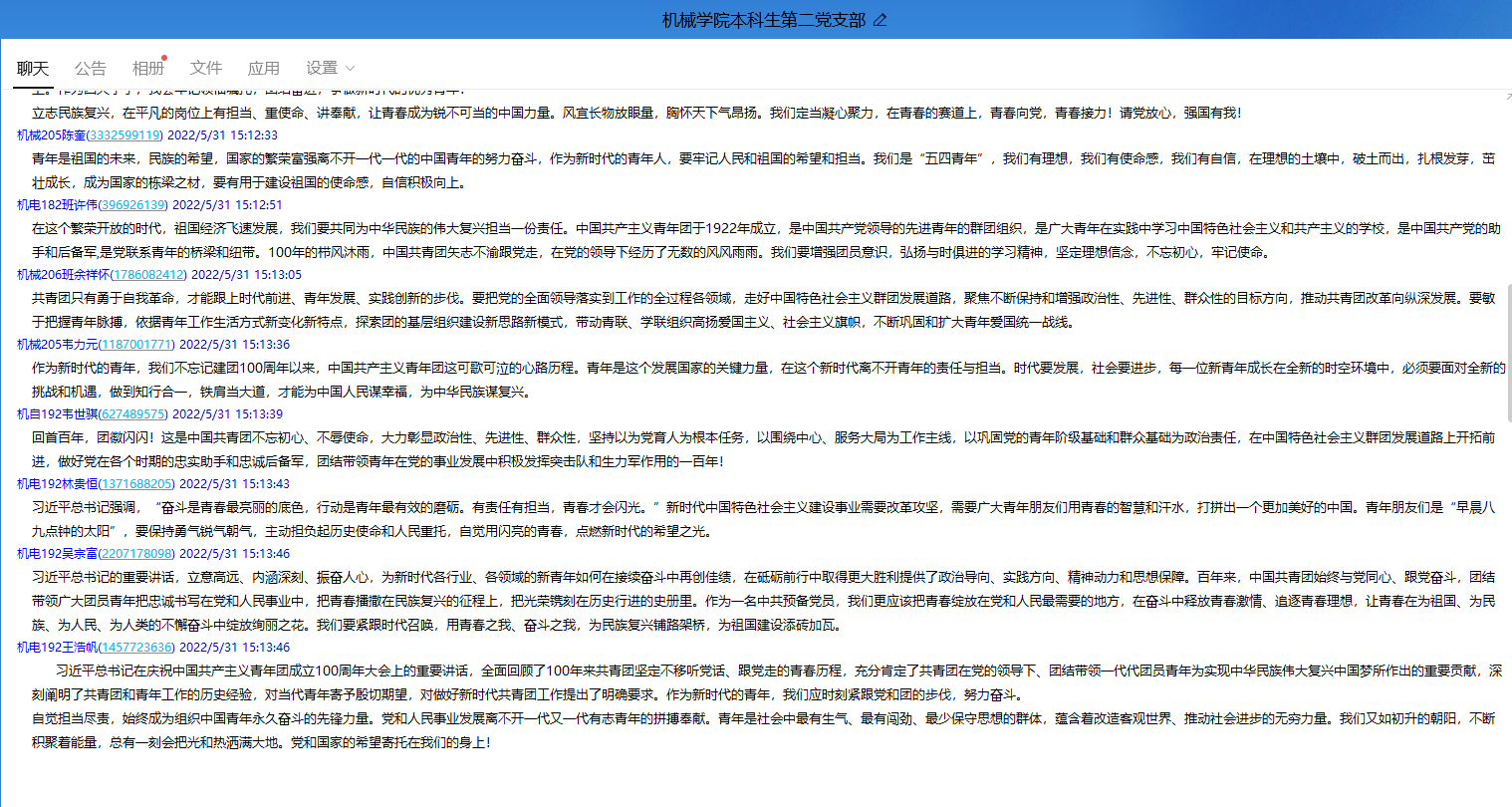 2022年5月10日,庆祝中国共产主义青年团成立100周年大会在北京举行,习近平总书记出席并发表重要讲话。为深入学习贯彻习近平总书记重要讲话精神,根据学校《关于深入学习贯彻习近平总书记在庆祝中国共产主义青年团成立100周年大会上的重要讲话精神的通知》的要求和具体安排,在学院党委的指导下,pg游戏电子官网本科生第二党支部于5月31日下午组织召开了专题学习活动。