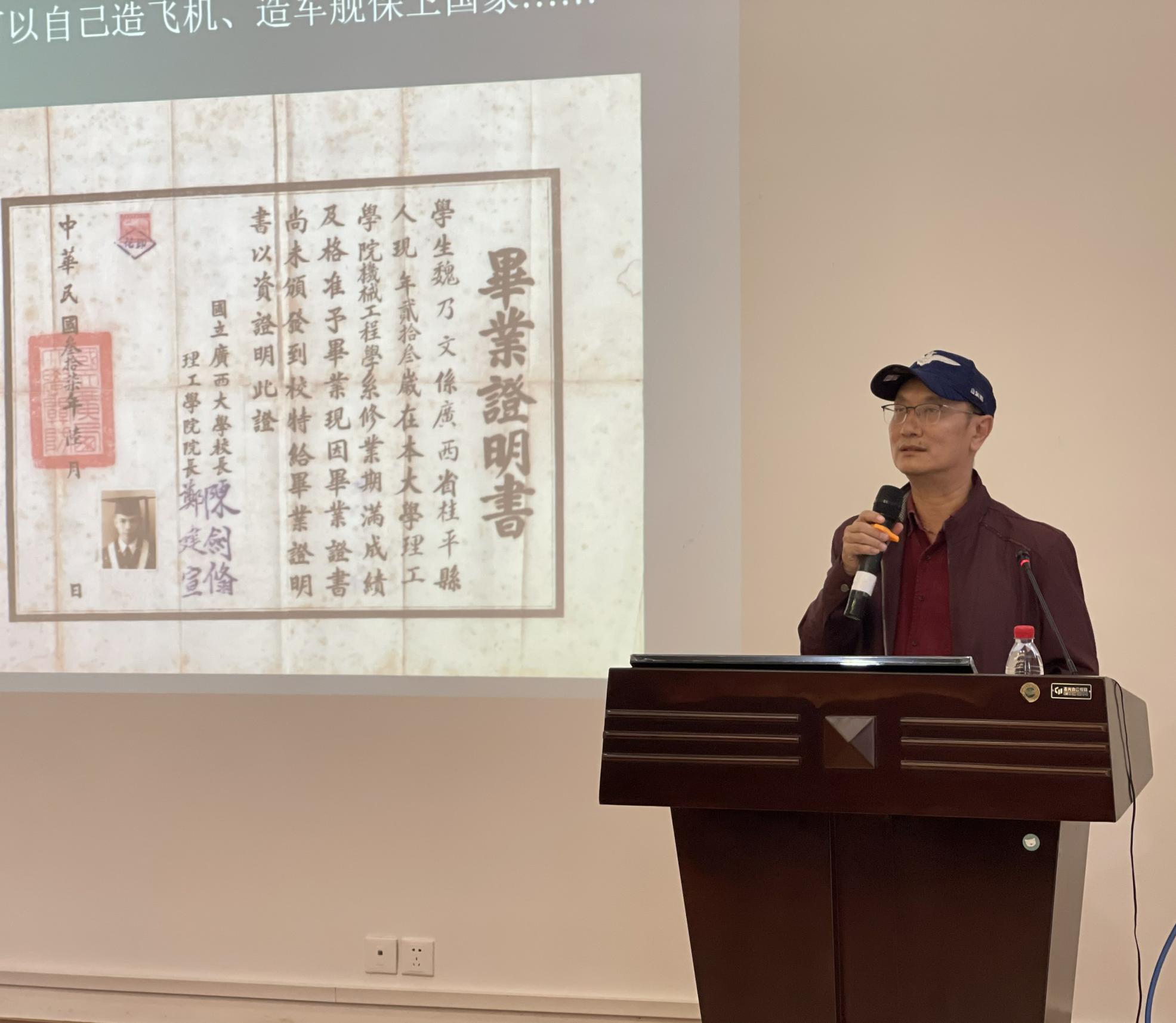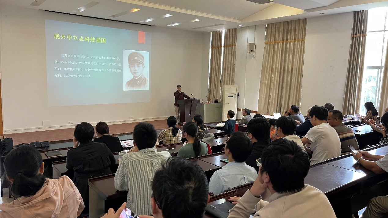 2022年11月15日下午,学院召开了全院教职工课程思政教育大会暨清廉故事会。此次特别邀请pg游戏电子官网杰出校友、国家“两弹一星”研究专家魏乃文老先生的侄子——魏风先生,为全院教师职工上了一堂以追忆魏乃文老先生生平事迹、学习魏老家国情怀为主题的思政教育课。