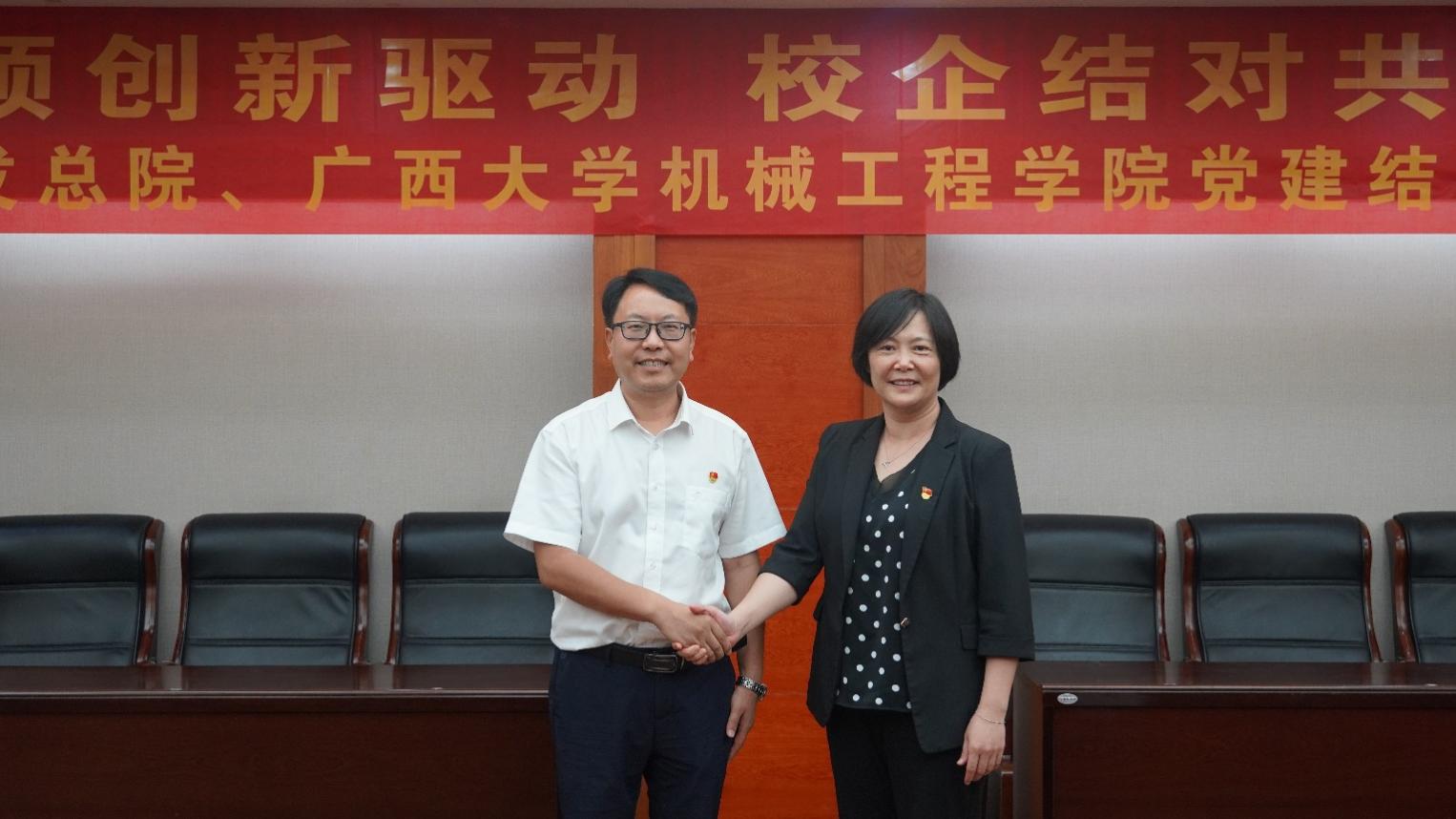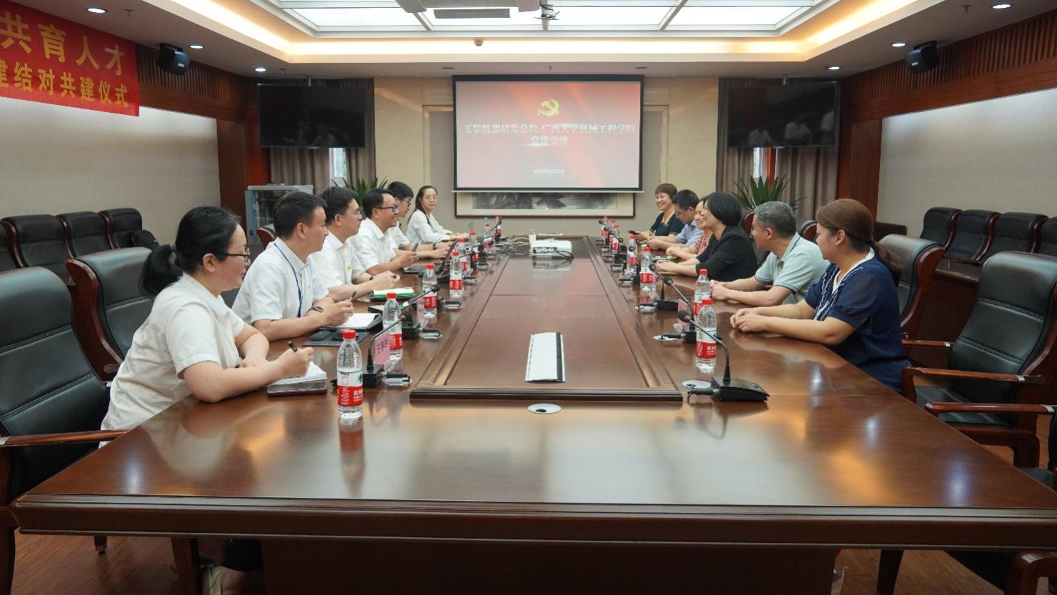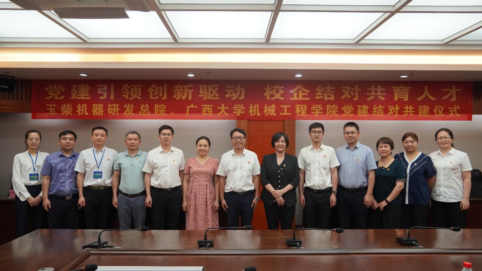 为深入开展学习贯彻习近平新时代中国特色社会主义思想主题教育,全面深化校企合作,5月22日,党委书记卢婵江带队到玉柴机器研发总院调研,并出席“党建引领创新驱动 校企结对共育人才”——玉柴机器研发总院-pg游戏电子模拟器党建结对共建仪式。学院党委副书记黄路明、副院长贺德强、黄豪中、李俚、高欲垚,院长助理兼能源与动力工程系主任欧阳天成,玉柴机器研发总院党委书记兼常务副院长寇传富,副院长兼新材料与摩擦润滑中心主任覃星念、党委副书记姜博、院长助理兼中重动力平台部主任向本杰、院长助理兼电控与智能化中心主任叶宇、轻动力系统部主任王春玲、运营管理部副主任周益善等参加调研活动并出席座谈会暨结对共建仪式。
