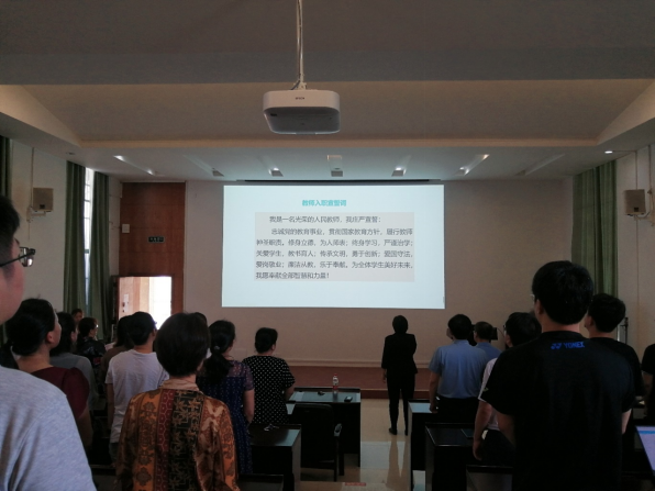 会上,学院党委书记卢婵江带领全体教职员工重温从教誓词。她强调,全体教职工要坚持师德师风第一标准,遵循新时代教师工作教育使命和职责,以立德树人为根本,围绕教育培养什么人、怎样培养人、为谁培养人的根本问题,展开教育,在传道受业解惑过程中要注意方式方法,切勿出现要与良好师德师风行为相悖的行为与言论。同时针对近期高校出现中的师德师风问题进行警示教育,强调全体教师在教书育人过程中要做到主体自觉和自律,明底线,守红线,不断增强廉洁治校、廉洁从教、廉洁育人、廉洁修身的意识。