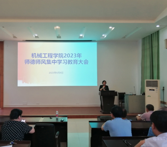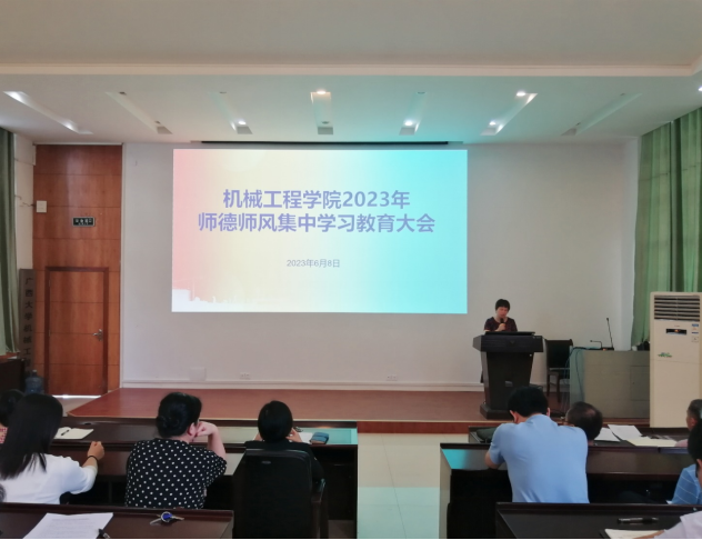 为进一步引导广大干部职工增强为党育人、为国育才的责任感、使命感和紧迫感,坚持政治引领,强化师德学习教育,夯实清正廉洁思想根基,6月8日,pg游戏电子官网在机二阶教室召开2023年师德师风集中学习教育大会,学院领导及学院全体教师参加本次大会。