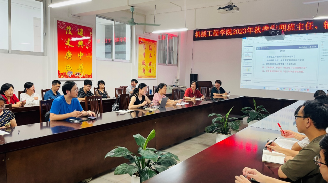 为加强班主任、辅导员队伍建设,提高本科教育教学质量,促进学生全面发展,9月5日晚,学院召开了2023年秋季学期班主任、辅导员工作会议。学院党委书记卢婵江、党委副书记黄路明、副院长李俚,以及全体班主任、辅导员老师等参加会议。