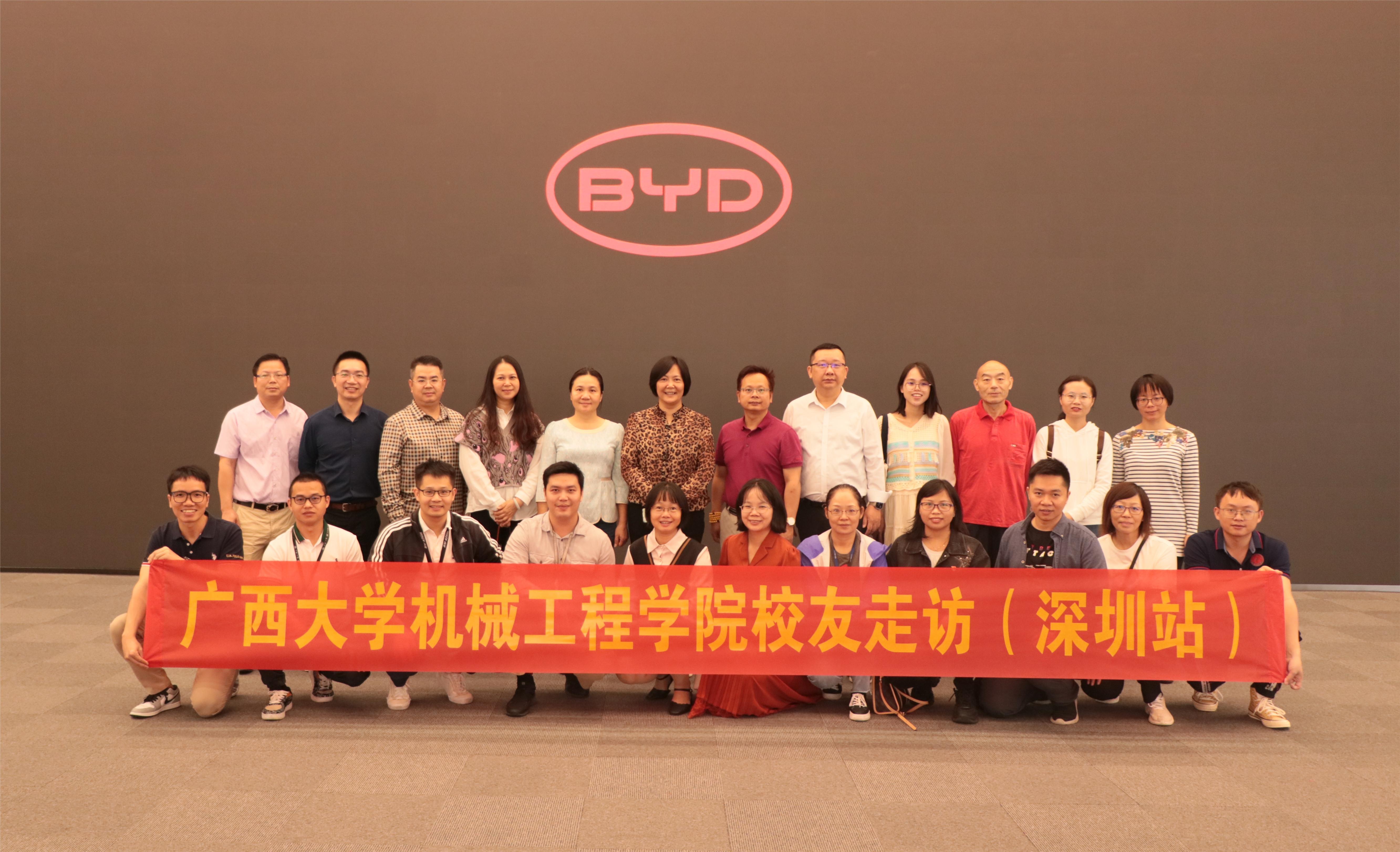 10月22日,在位于深圳的比亚迪全球总部,卢婵江书记、黄路明副书记一行与深圳亿道控股有限公司总经理钟景维、海拓华擎生物科技有限公司何毅总经理、比亚迪汽车工程院段月星等20余名机械校友一同参观比亚迪全球中心展厅,并在礼宾楼会议室和校友进行座谈交流。卢婵江书记向各位校友介绍了学院近年来的发展,特别是近年来在人才培养、学科建设、招生就业等方面所取得的进步以及本次“广东工业行”活动目的和体会。钟景维等创业校友给在读师生分享了自己的创业经历和成长体会,并就未来发展给师弟师妹们提出了殷切的期望和建设性的意见。最后,卢婵江书记代表学院向校友们发出诚挚的邀请,希望校友们能在11月18日返校同贺pg游戏电子模拟器建院90周年庆典,助力pg游戏电子模拟器的办学更上台阶!