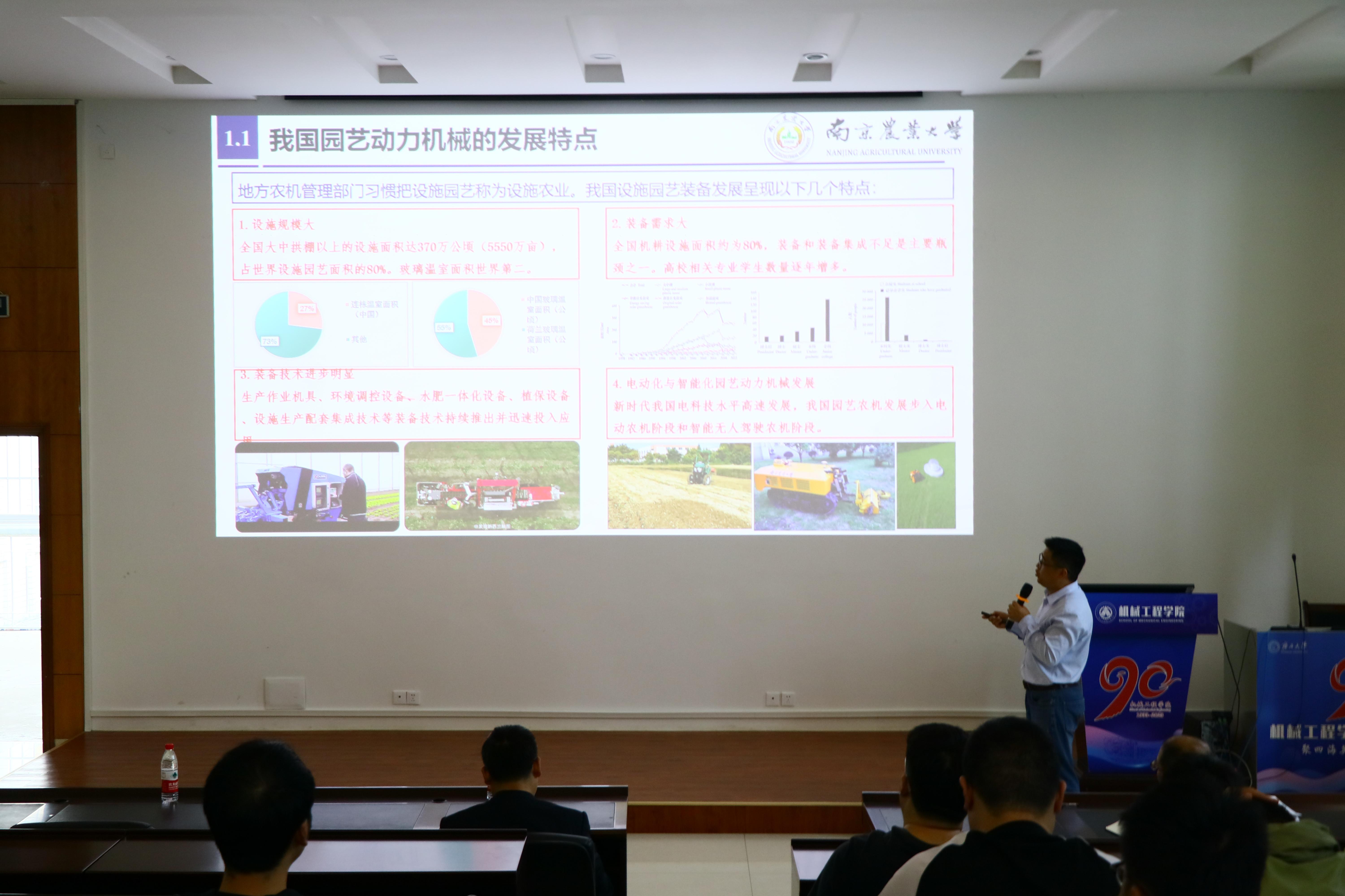 11月24日,南京农业大学工学院教授、博士生导师肖茂华和南京林业大学机电学院林机系主任陈青副教授受邀到访pg游戏电子官网,肖教授为学院师生做了以“电动智能园艺动力机械发展关键技术”为题的学术报告。副院长贺德强主持报告会。