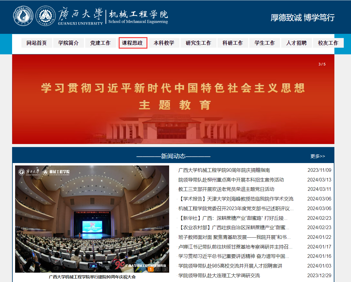 依托学校慕课中心网络平台,不断挖掘和丰富机械工程学科的课程思政素材;组织全院13门课程思政示范课教学团队建立课程思政示范课建设群,增进交流分享,培育更多、更高级别示范课;在学院官网增设“课程思政”专栏,加强政策指导和案例分享;组建课程思政案例库建设团队,建设机械工程学科的课程思政案例库,并收集整理示范课的资源和经验供全院教师参考借鉴。