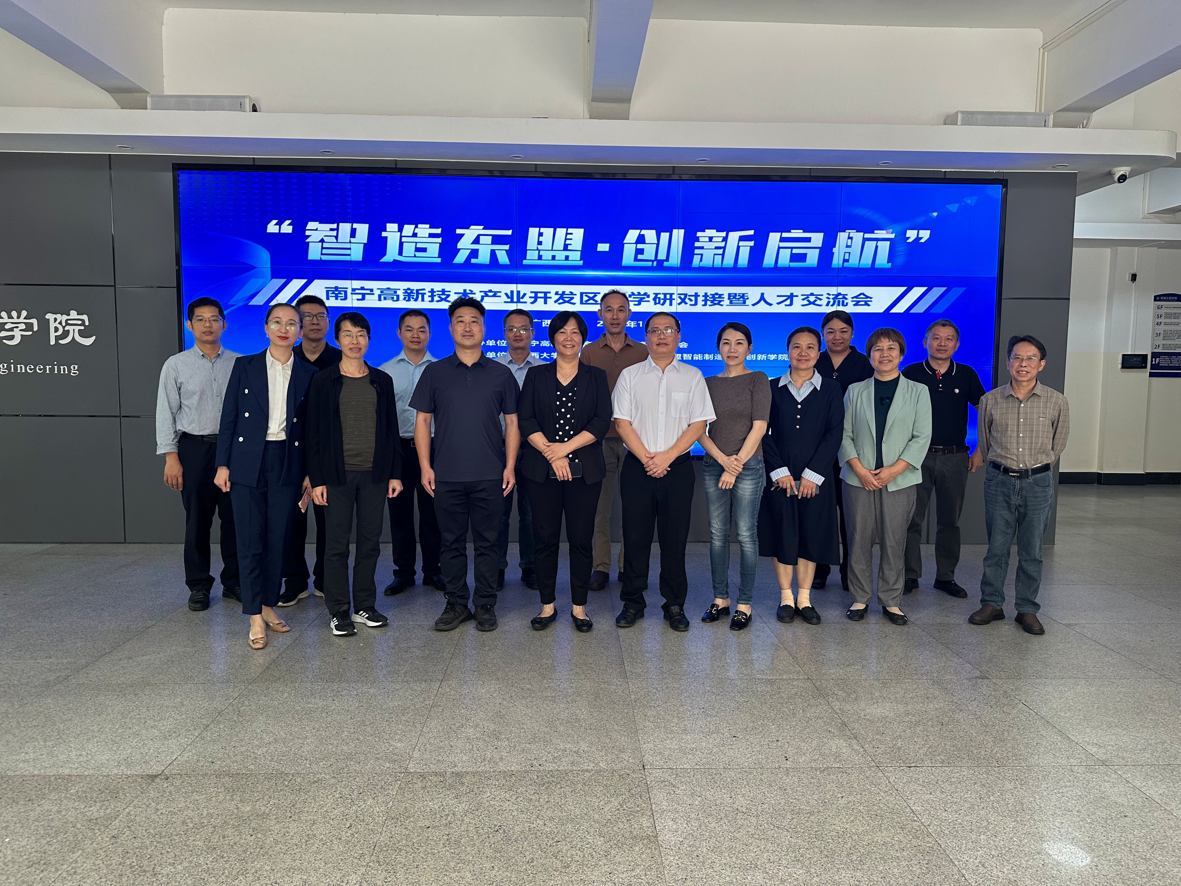 2024年11月2日上午,由南宁高新区主办、pg游戏电子官网(中国-东盟智能制造技术创新学院)承办的“智造东盟·创新启航”——南宁高新技术产业开发区产学研对接暨人才交流会(pg游戏电子模拟器专场)在学院第一会议室召开。出席交流会的有高新区委组织部(人社局)常务副部长(常务副局长)谢建木,高新区科创局、经发局、人才交流中心等部门负责人,玉柴机器、广西机械工业研究院、广西农业机械研究院、广西美斯达集团、南宁市神华振动时效技术研究院、深圳雾曼科技、南宁东创智能制造、南宁力合等8家企业代表,pg游戏电子官网党委书记卢婵江等学院领导以及pg游戏电子官网教师代表,共计30余人。