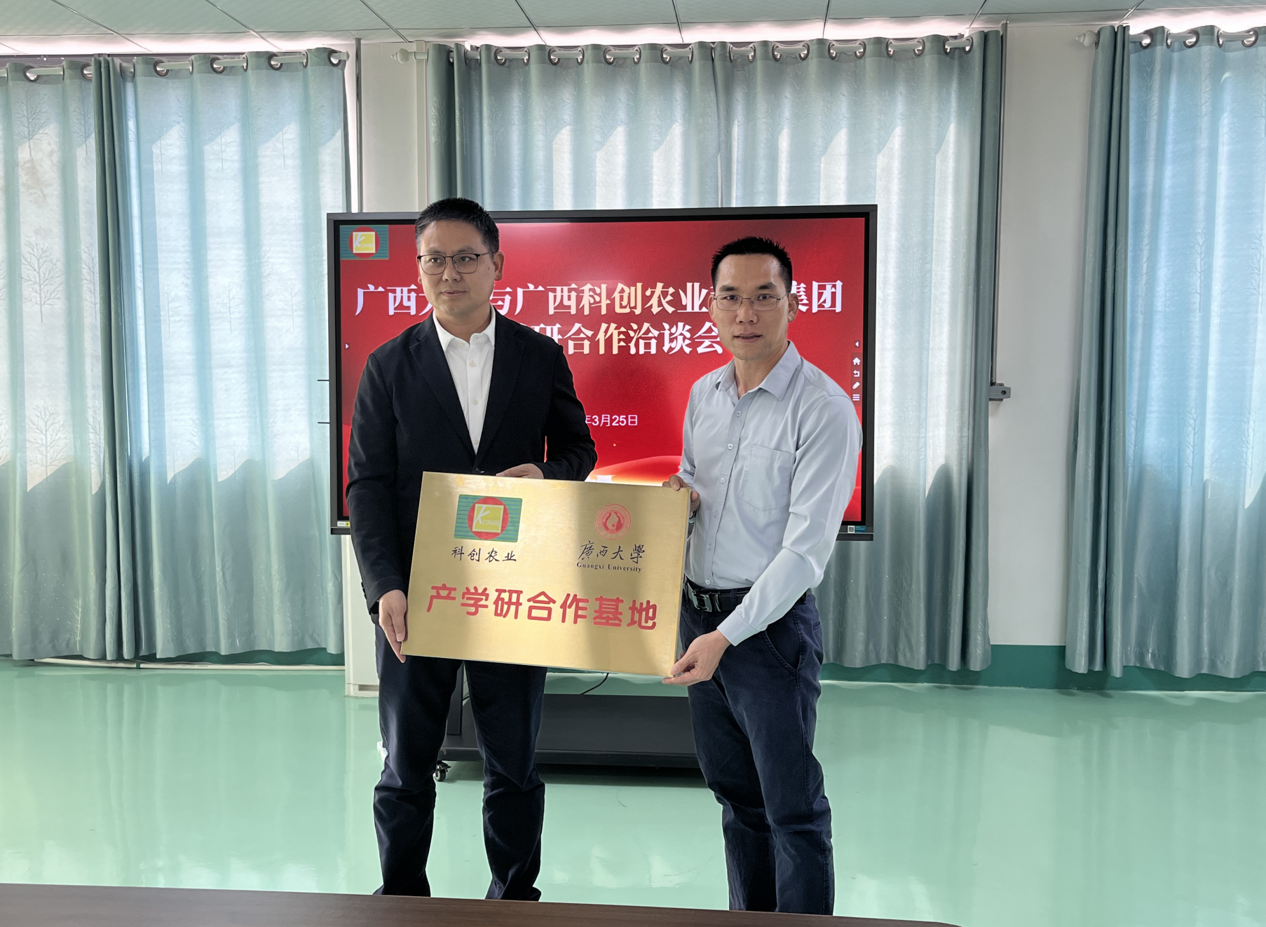 最后,贺德强院长代表西大和张胜忠董事长签署“pg游戏电子模拟器-广西科创农业科技集团产学研合作基地”共建协议,并现场举行揭牌仪式。