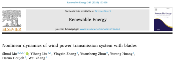近日,pg游戏电子官网2022级硕士研究生刘翊恒(导师:莫帅教授)以共同第一作者在工程技术领域国际权威学术期刊《Renewable Energy》(中科院一区,Top期刊,IF:9.0)发表研究成果“Nonlinear dynamics of wind power transmission system with blades”。该成果以pg游戏电子模拟器为第一单位。