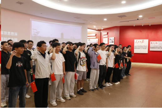 在“壮乡奋进・薪火相传”展区,全体党员面向党旗肃立。党支部书记以昂扬语调领誓,同志们高举右拳,重温入党誓词。铿锵有力的誓言,既是对入党初心的庄严重申,也是对革命先辈的深情回应。