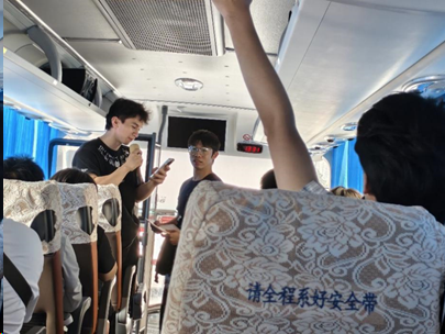在前往展馆和返回学校的路途中,组织开展党史知识问答和红色故事分享环节。党员们纷纷踊跃参与答题,回顾党的光辉历程;几位党员主动分享了参观烈士陵园的感悟和熟悉的红色故事。现场气氛庄重而热烈,大家在交流中进一步深化了对初心使命的理解,凝聚了前行的力量。