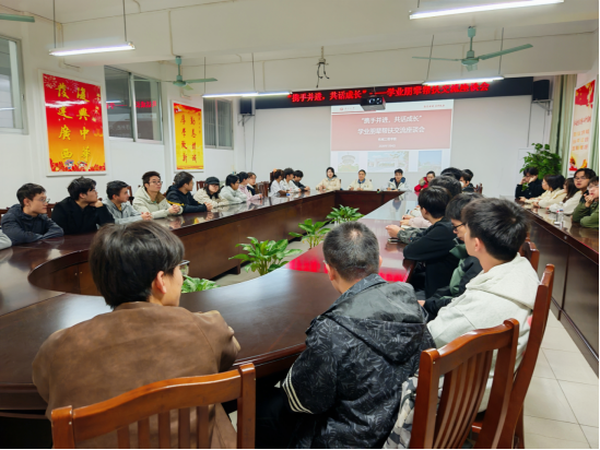为进一步加强学院学风建设,提升学业朋辈帮扶质量,2026年1月4日,院学工组在第一会议室组织召开2026年学风建设暨学业朋辈帮扶交流座谈会,院党委副书记黄路明、院团委书记李华、辅导员农婷婷、初虹辰以及本学期各朋辈帮扶对子代表参加座谈交流。