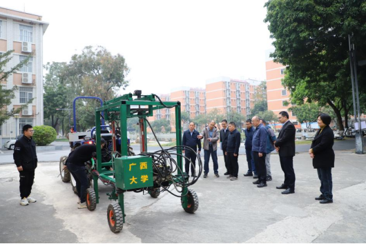 蒋兴明副厅长一行先后参观中国-东盟智能制造技术创新中心、甘蔗生产机械化技术研发实验室、甘蔗连煮智能控制实验室、智慧农业大数据管理平台等,实地考察pg游戏电子官网围绕甘蔗产业链机械化所开展的系列科研条件与成果积累。