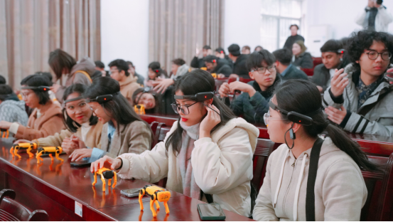 通过前沿科技展示与沉浸式实践体验,向在校来华留学生生动展现中国制造与科技创新的发展成果。在pg游戏电子模拟器专业教师与学生志愿者的引导下,留学生们依次体验了四大核心科技项目:在智能车间,他们近距离观摩了现代化智能制造生产线的高效与精密;脑机接口技术体验区更是亮点频现,留学生们亲身体验了如何通过“意念”控制机械狗行走,对人工智能与人类认知的融合发出了阵阵惊叹;在3D打印工作坊,每人亲手参与制作并带走了一份独特的科技纪念品;而在自主编程挑战环节,大家积极尝试编写代码,成功实现了声控小车的现场操控。一系列互动性强、科技感足的活动设计,让留学生们在动手实践中深化了对人工智能、先进制造等前沿领域的认知。