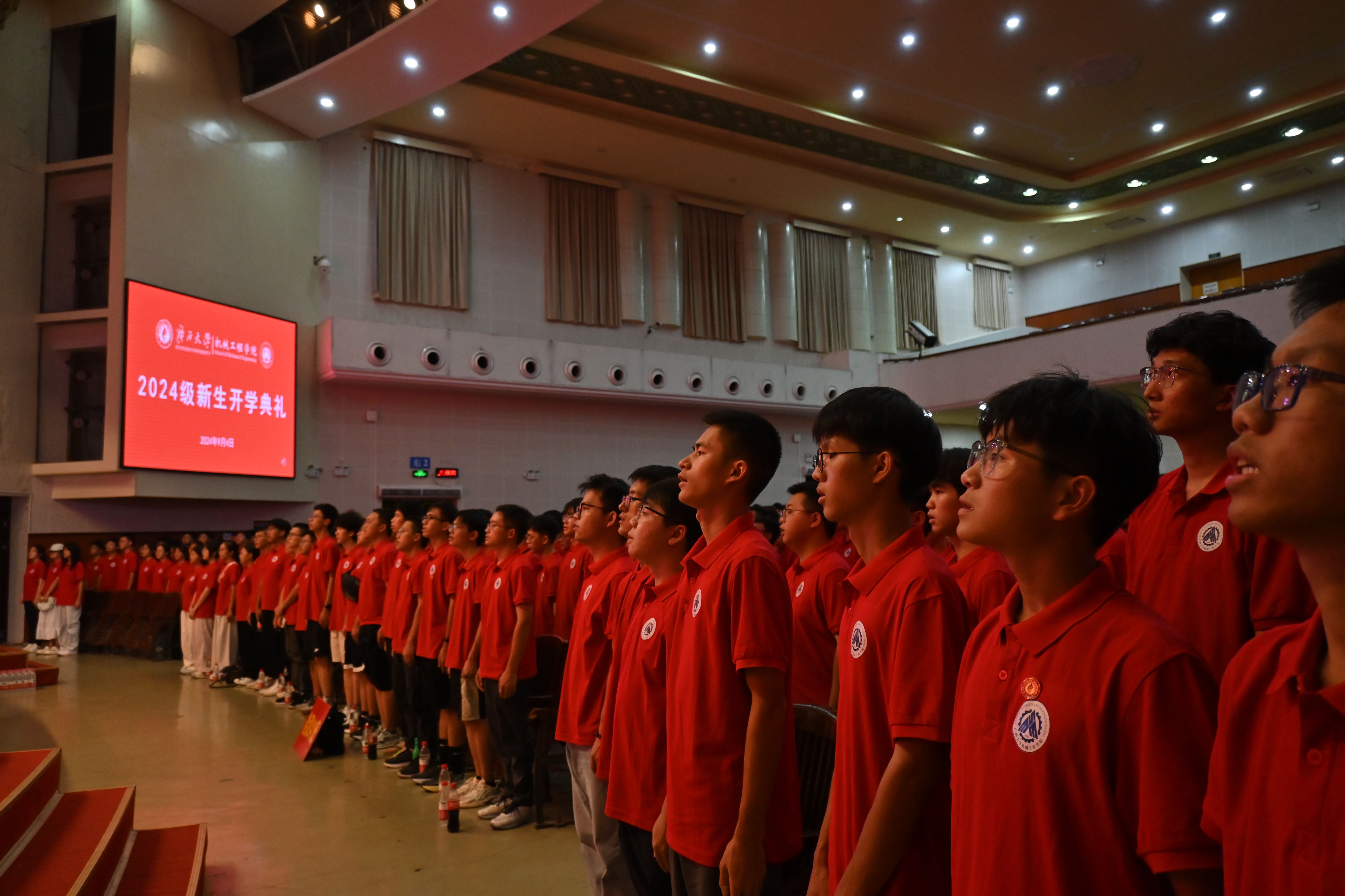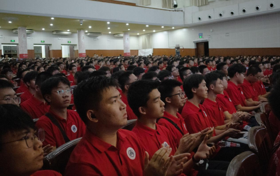2024年9月4日晚,pg游戏电子官网2024级新生开学典礼在学校大礼堂隆重举行。学院领导、各系教师代表、辅导员及新生班主任与身着红色院服的2024级全体新生们齐聚一堂,共同参与本次开学典礼。典礼由学院党委副书记、纪委书记黄路明主持。