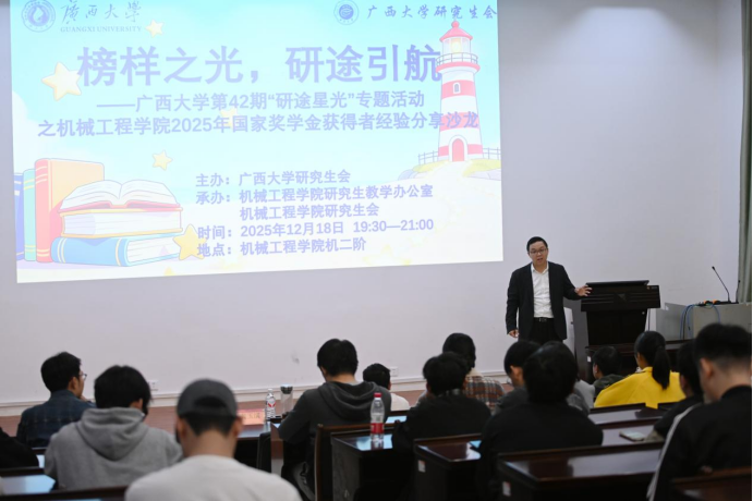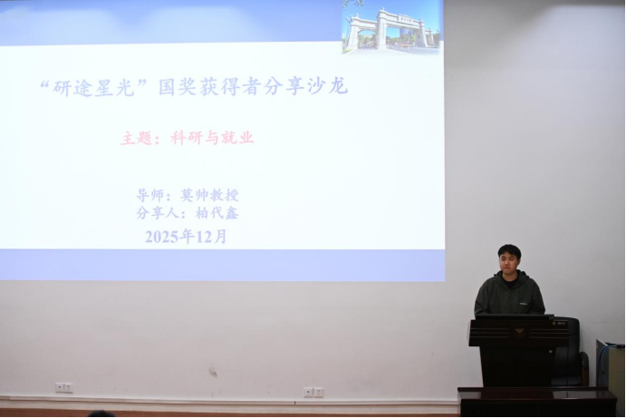 12月18日,由校研究生会主办,pg游戏电子官网研究生会承办的pg游戏电子模拟器第42期“研途星光”主题沙龙活动在机二阶教室举行。本次活动邀请了学院2025年研究生国家奖学金的获得者、博士研究生吴金鑫、柏代鑫、龚玉滨,分别围绕科研规划、论文写作、求职技巧及工作平衡等方面进行经验分享。学院分管研究生副院长莫帅受邀出席活动并作指导。