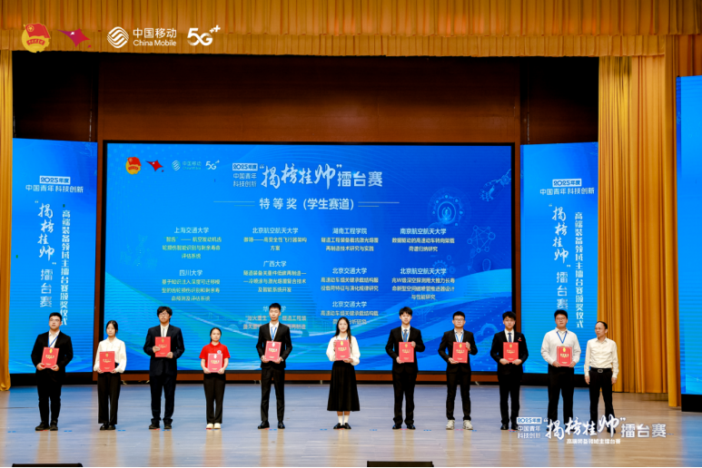 中国青年科技创新大赛的前身是全国A+类学科竞赛“挑战杯”全国大学生课外学术科技作品竞赛,“揭榜挂帅”擂台赛属于该赛事下设的专项赛。2025年度中国青年科技创新“揭榜挂帅”擂台赛由共青团中央、中国科协、教育部、中国社会科学院、全国学联共同主办,其中高端装备领域主擂台赛由共青团湖南省委和长沙市人民政府承办,分设学生赛道和青年科技人才赛道。本届大赛共吸引来自全国7000余支青年团队参赛,经过层层角逐,最终来自全国121所高校共302支队伍入围高端装备领域的全国总决赛。此次获奖是pg游戏电子官网首次在“挑战杯”系列学科竞赛中的又一次突破,展现出pg游戏电子官网在智能制造领域人才培养方面的突出成效。