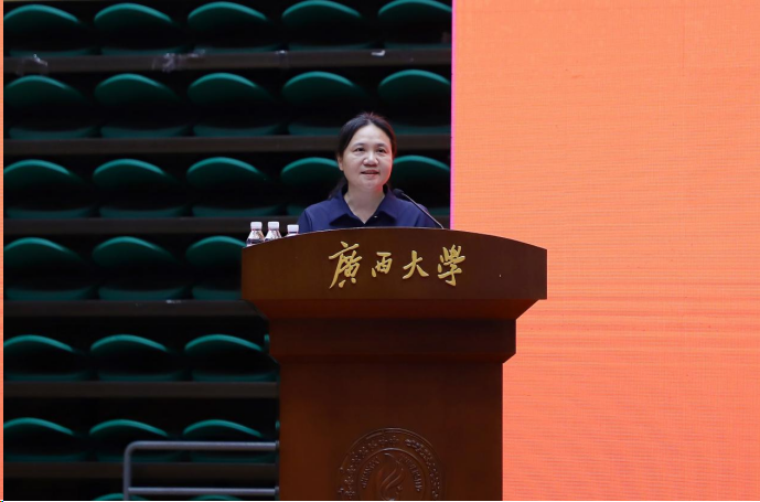 教师代表发言环节,陈勇教授代表全体教师向同学们致以热烈的欢迎,并对大家寄予深切期望。他指出,机械工程作为支撑大国重器的核心力量,是书写机械智能强国故事的关键载体,新时代的机械工程已突破传统界限,与新材料、人工智能等前沿领域深度融合,这要求同学们成长为兼具扎实专业功底与开阔创新视野的复合型人才。大学是探索未知的殿堂,他希望同学们始终以严谨态度对待每一门课程、每一次实验,在理论钻研与实践操作中真切感受工程之美。“同学们正生逢一个伟大的时代,广西正处在改革发展的蓬勃进程中。”他勉励大家,潜心钻研学业,以专业能力回应时代需求,用青春力量为国家建设添砖加瓦。