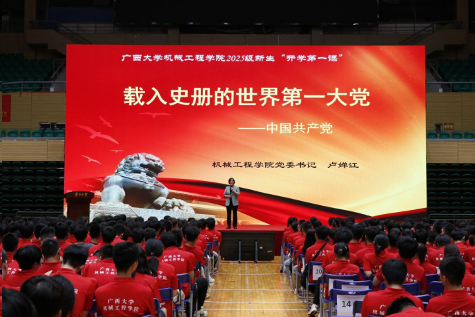 典礼后,学院党委书记卢婵江紧接着为在场新生们带来了一场意义深刻的入党启发教育。卢书记从中国共产党的诞生背景讲起,阐述了党在不同历史时期所面临的重大挑战与艰难抉择,深入剖析了党如何凭借坚定的理想信念、卓越的领导能力和强大的组织凝聚力,带领中国人民取得革命胜利、推进社会主义建设、实现改革开放的伟大跨越,通过一个个鲜活的事例、一组组震撼的数据,让新生们深刻认识到中国共产党作为载入史册的世界第一大党的伟大成就与深远意义,激励同学们将个人理想融入国家发展大局,积极向党组织靠拢。