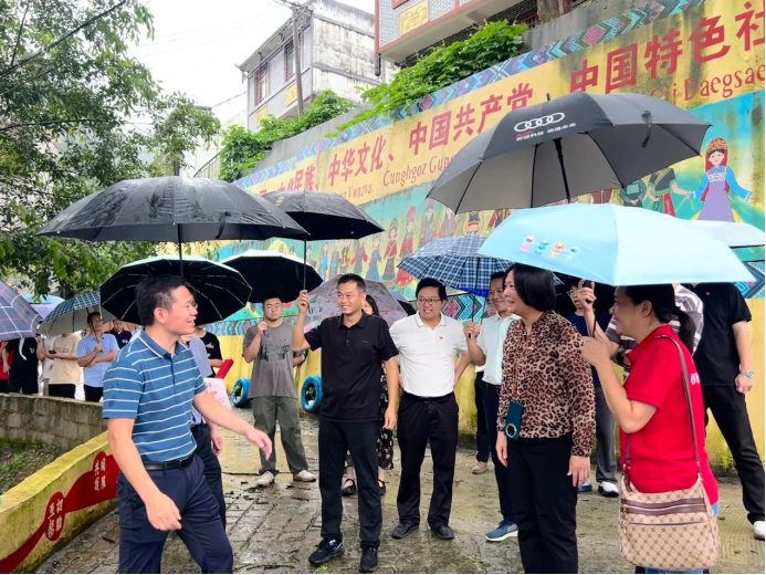 在那坡县、镇领导以及驻村第一书记们的陪同下,师生党员们走访民族团结示范村达腊村了解彝族村落发展状况,走访信合村实地调研铝土矿复垦难题,走访德合村了解蜜薯产业发展规划等,感受我校历届驻村工作队通过加强党的建设推动产业发展、改善民生福祉的建设成果。
