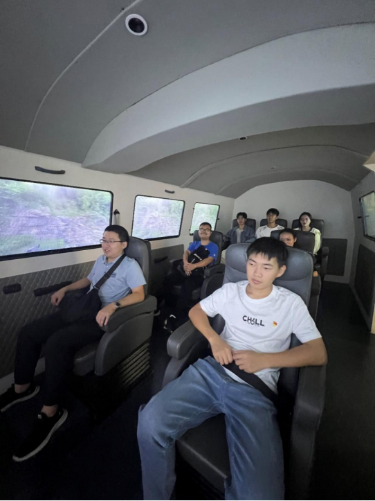 支部党员乘坐模拟车辆体验扶贫干部在崎岖山路行驶的感受
