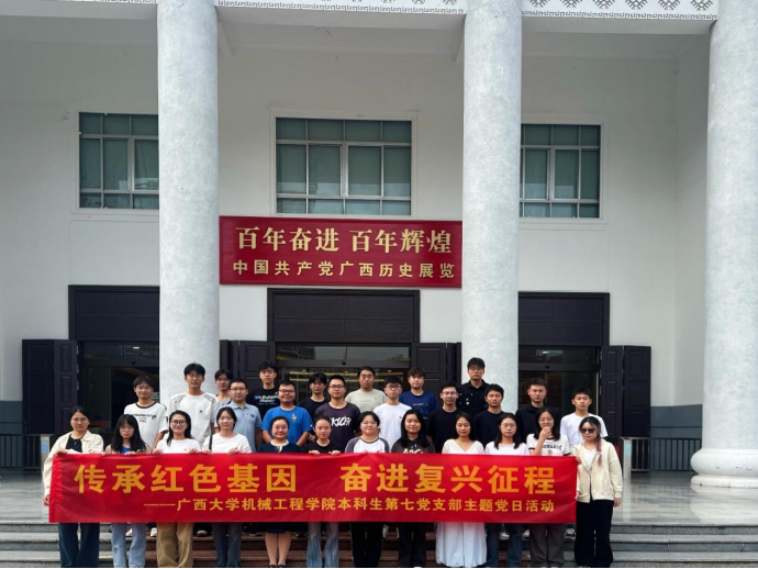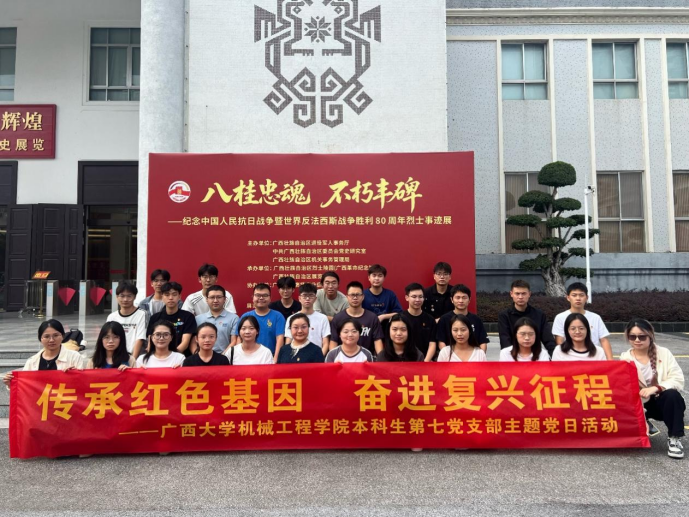 为隆重纪念中国人民抗日战争暨世界反法西斯战争胜利80周年,深入领会习近平总书记系列重要讲话精神,引导青年党员在历史的回望中汲取力量,在时代的浪潮中砥砺初心,10月28日下午,pg游戏电子模拟器本科生第七党支部全体党员赴广西展览馆,开展了一场主题为“传承红色基因·奋进复兴征程”的主题党日活动。
