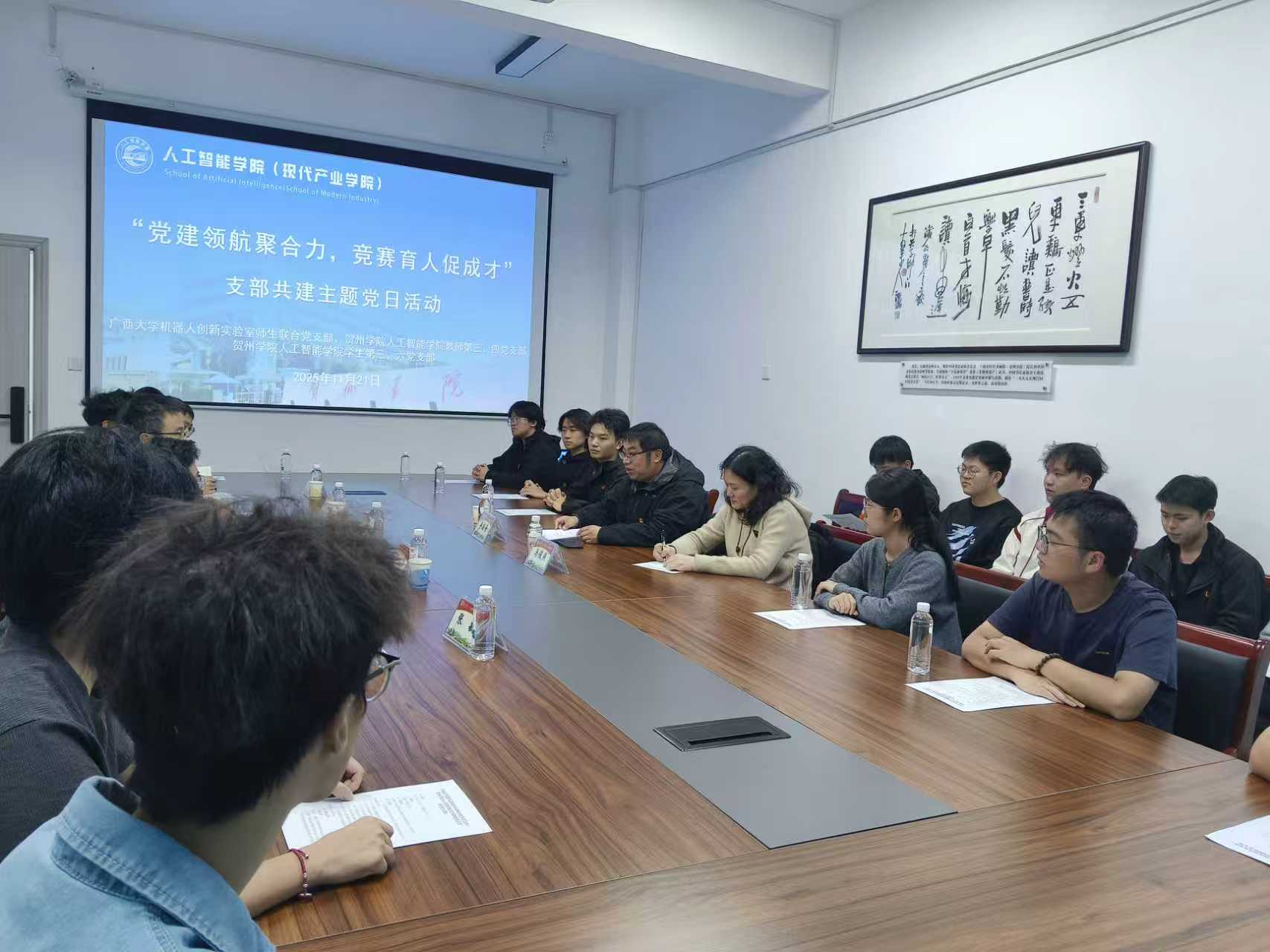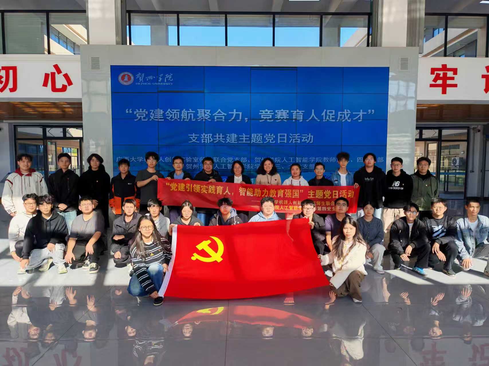 2025年11月21日下午,pg游戏电子官网党委新成立的pg游戏电子模拟器机器人创新实验室师生联合党支部在支部书记李岩舟老师的带领下,赴贺州学院与贺州学院人工智能学院教师第四党支部开展“党建引领实践育人,智能助力教育强国”联合主题党日活动。贺州学院人工智能学院(现代产业学院)党委书记李素云、党委副书记兼纪委书记邓玉赏、智能工程系主任罗士君以及两个支部的全体党员参加联建。