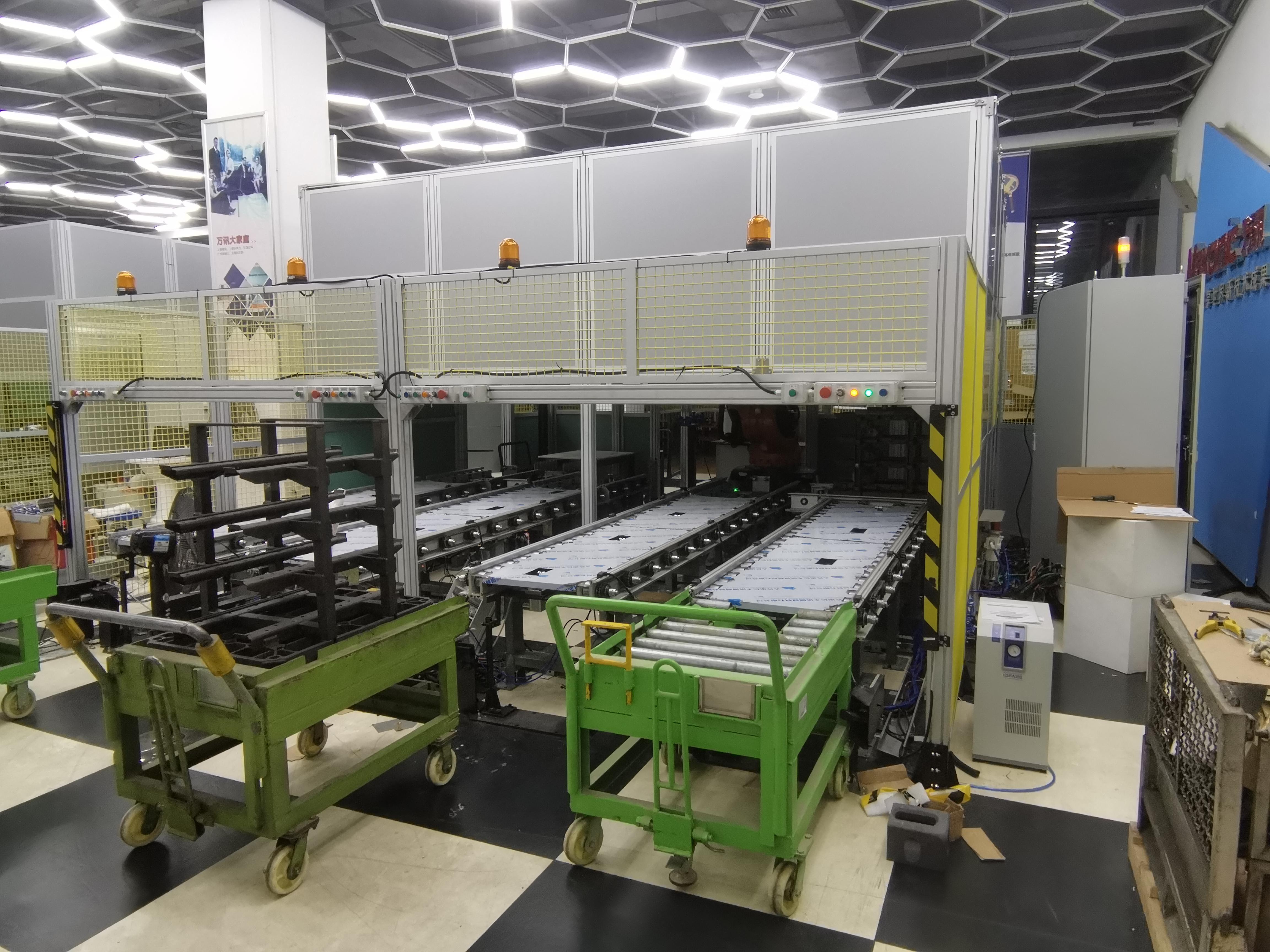图4与上市公司深圳万讯自控有限公司合作设计的发动机曲轴自动上下料流水线(b)