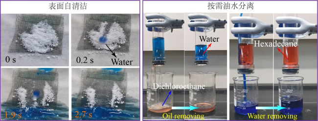 图2 超疏水表面的自清洁和油水分离应用