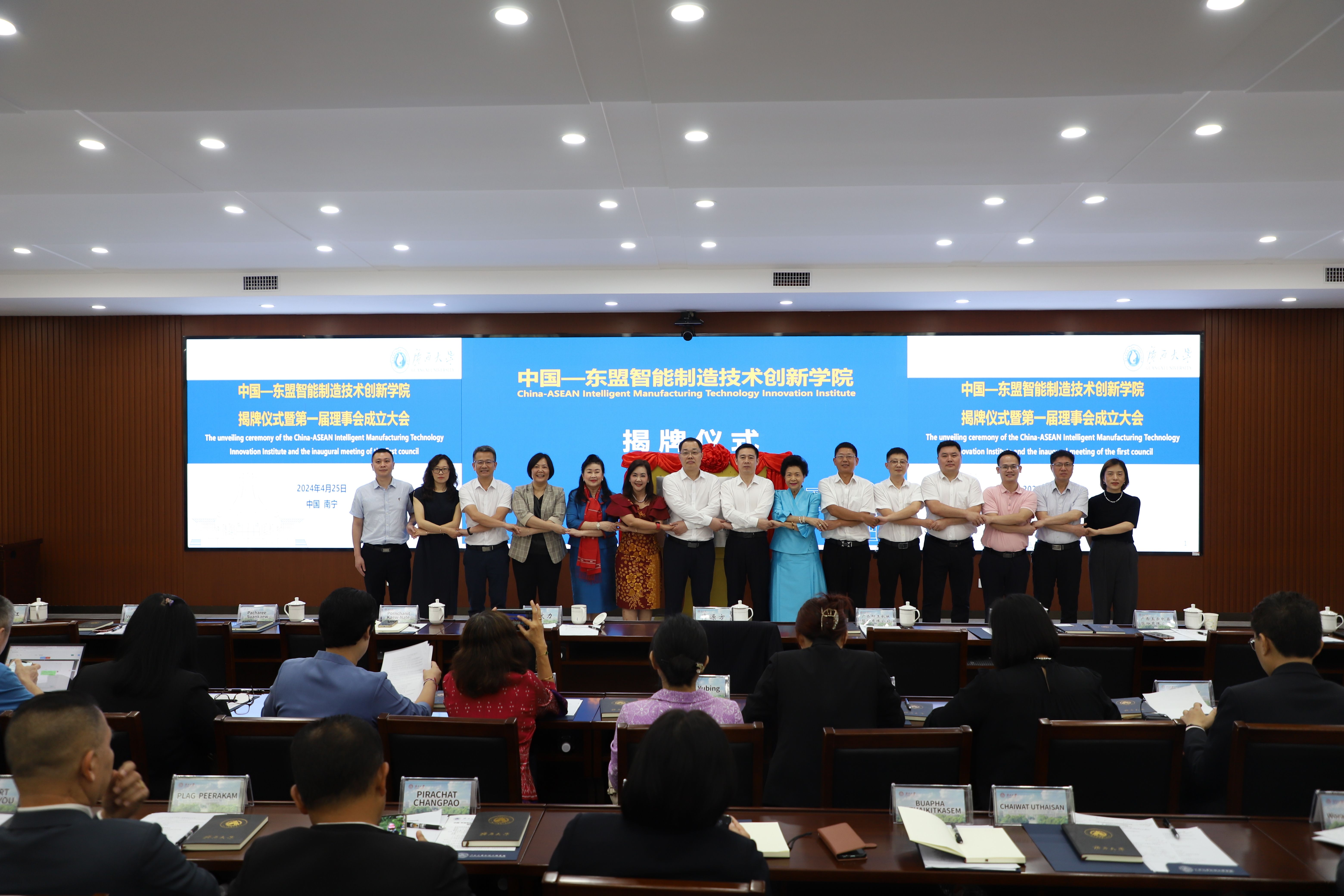 随后举行了中国-东盟智能制造技术创新学院第一届理事会会议。经过充分讨论,理事成员一致推选pg游戏电子模拟器为理事长单位,柳工机械、玉柴机械、南宁学院、广西机电职业技术学院、广西交通职业技术学院为副理事长单位,北部湾大学、广西林业集团、广西机械工业研究院、南宁中车铝材精密加工公司、南宁职业技术学院、泰国川登喜大学、泰国朱拉隆功大学为理事单位。会议还通过了技术创新学院第一届理事会组织架构和主要负责人员名单,任命马献力为院长,卢婵江为常务副院长,侯国清、蔡宇平、陈正振、黄政艳、赵双良、贺德强为副院长,具体负责学院日常管理。理事会就技术创新学院2024-2026年工作计划达成共识。