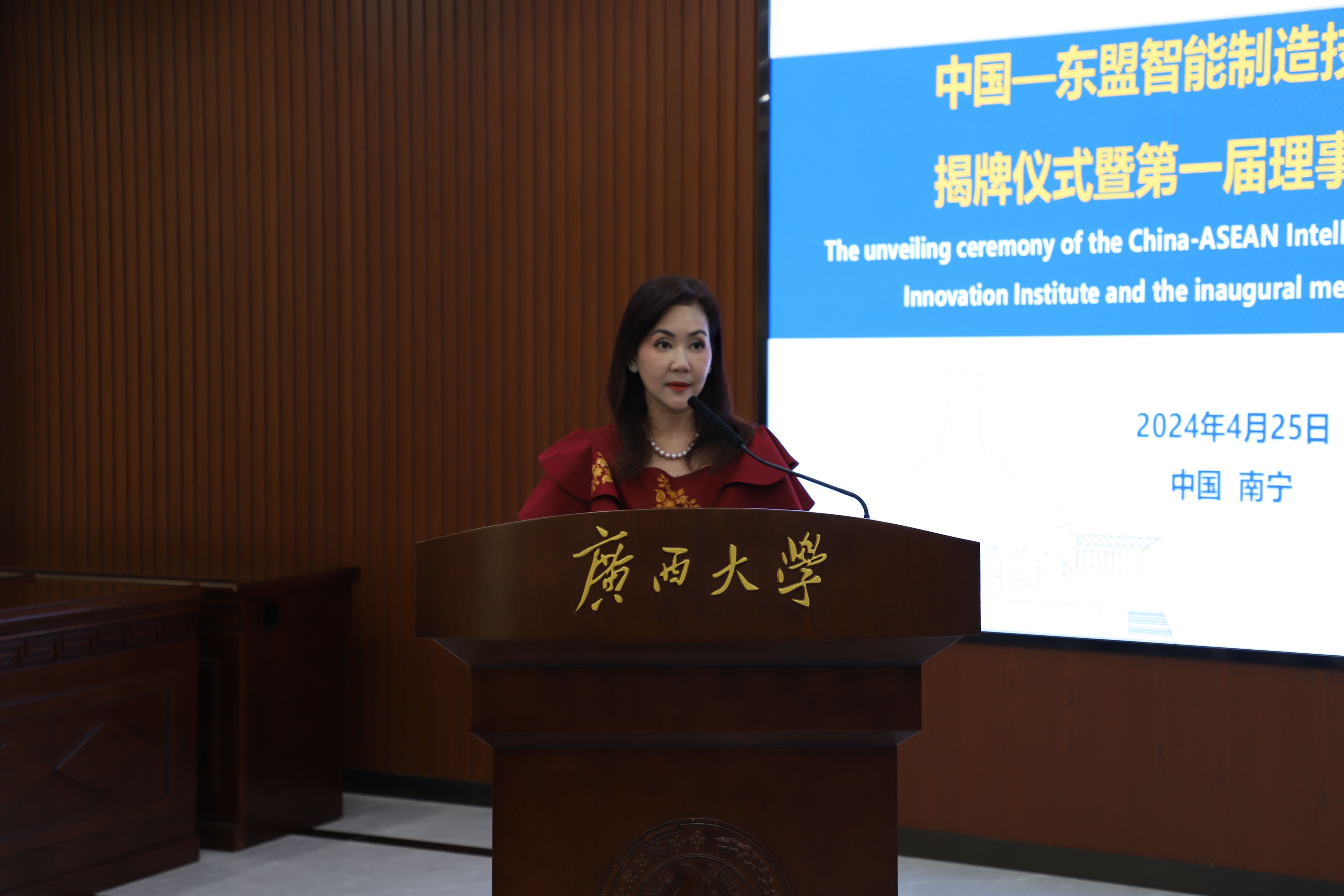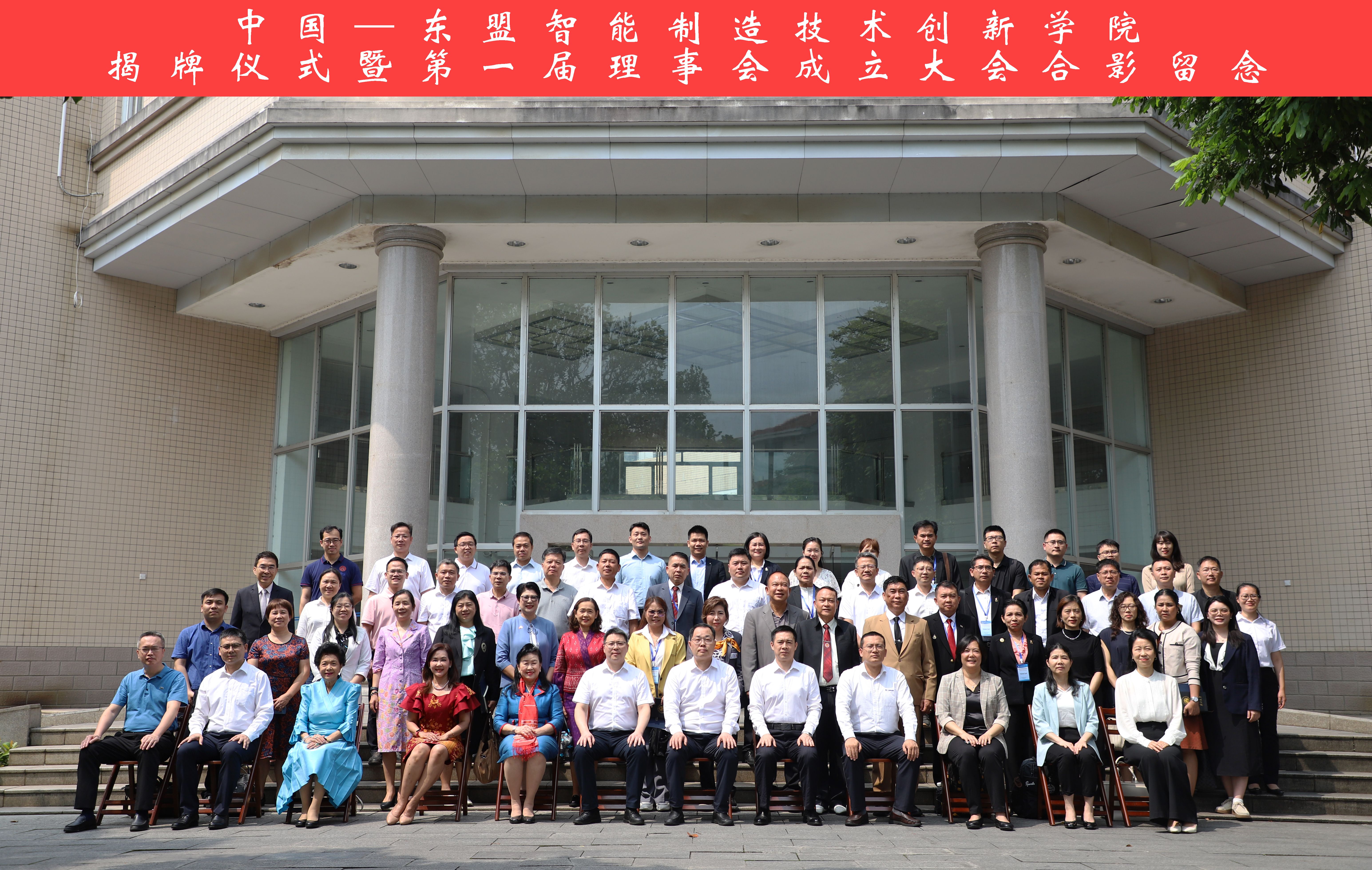 会议通过中国-东盟智能制造技术创新学院第一届理事会理事成员名单。马献力副书记代表技术创新学院牵头单位向理事们现场颁发聘书。