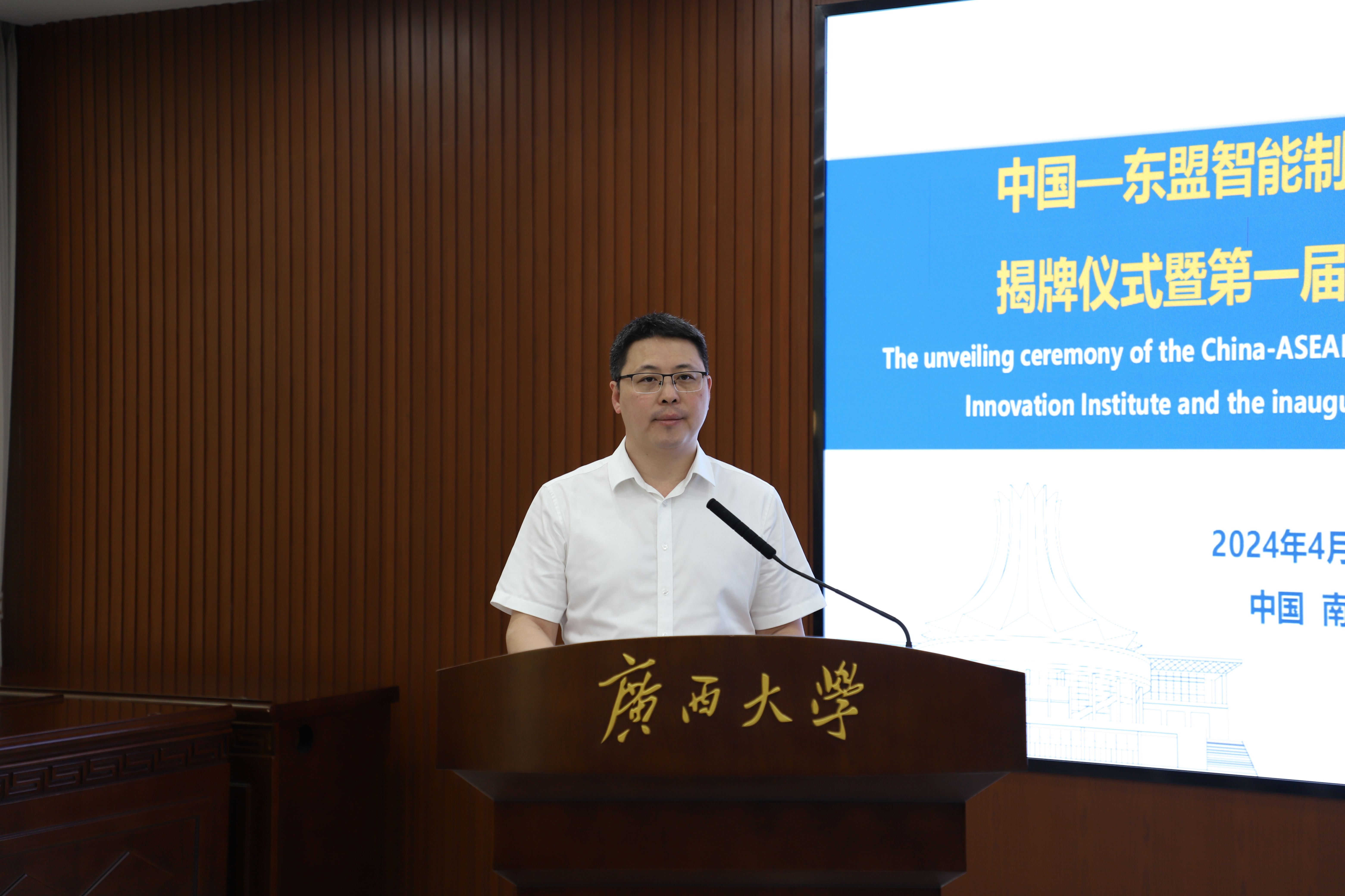 4月25日上午,由pg游戏电子官网牵头的中国-东盟智能制造技术创新学院在我校揭牌成立。校党委常委、副书记马献力、自治区教育厅高教处处长兼学位管理与研究生教育处处长(自治区学位办主任)傅源方共同为技术创新学院揭牌。
